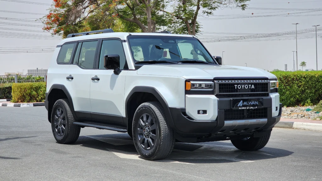 Brand new 2024 Toyota Land Cruiser Prado available at Alwan Global Cars with Al Futtaim Warranty.